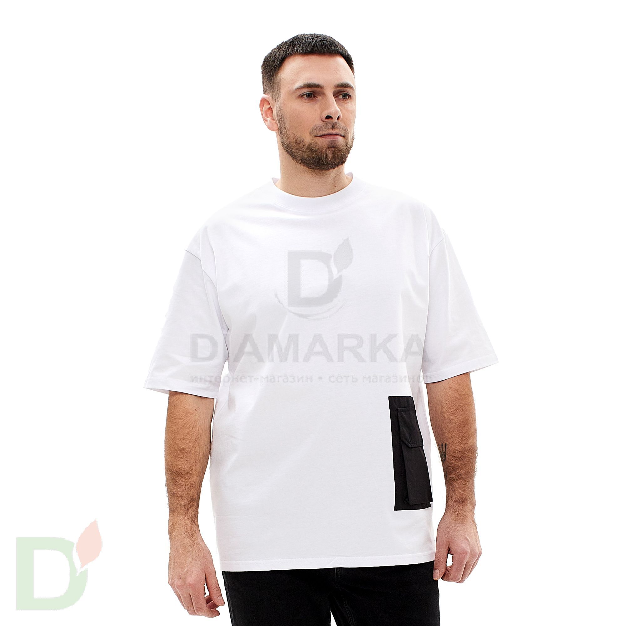 Футболка выполнена в базовом белом цвете и дополнена чёрным карманом. Эта модель идеальна для школы на физкультуру, для путешествий, прогулок, детского сада, санатория, дома, сна, занятий спортом, йогой и как повседневный вариант для детей, подростков и взрослых.