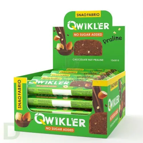 <h2>Фитнес батончик без сахара для питательного перекуса</h2> Батончики Snaq Fabriq - новое ответвление в линейке продуктов Bombbar. Это натуральные низкоуглеводные батончики (а также шоколад и конфеты), изготовленные на основе измельченных орехов. Они не содержат добавленного сахара, искусственных ароматизаторов, муки, вредных жиров.<br> <br> Батончик QWIKLER - идеальный вариант для быстрого перекуса находу. Это прекрасная качественная замена обычным сладостям для<br> <ul> <li>людей с диабетом</li> <li>тех, кто не переносит глютен</li> <li>спортсменов</li> <li>ЗОЖников и ППшников</li> <li>соблюдающих диету</li> <li>сладкоежек со стажем, которые хотят снизить потребление сахара</li> </ul> <b>QWIKLER - это гармоничное сочетание начинки по типу нуги или пралине, нежного молочного шоколада и орехов. В этот вкус и сочетание невозможно не влюбиться!</b><br> <br> <h3>Преимущества батончиков Snaq Fabriq</h3> <ul> <li>высокое содержание клетчатки</li> <li>малое содержание углеводов</li> <li>повышенное содержание белка (в сравнении с обычными батончиками) дарит длительное и качественное насыщение</li> <li>низкий гликемический индекс</li> <li>натуральный состав</li> <li>отменный вкус!</li> </ul> <h3>Состав батончика QWIKLER</h3> водорастворимые волокна кукурузы, ореховая смесь (фундук, миндаль), молочный шоколад (водорастворимые волокна кукурузы, какао масло, какао тёртое, молоко сухое обезжиренное, эмульгатор (соевый лецитин), ароматизаторы натуральные, подсластитель (сукралоза)), масло какао, какао порошок, олигофруктоза, фундук, крахмал картофельный, кукурузная мука, масло подсолнечное, молоко сухое цельное, эмульгатор (соевый лецитин), загуститель (гуаровая камедь), регулятор кислотности (гидрокарбонат натрия (сода пищевая)),  соль пищевая, ароматизаторы натуральные, яичный белок, подсластитель (сукралоза).<br> <h4>КБЖУ на 1 батончик / 35 грамм</h4> б - 2,5<br> ж - 10,5<br> у - 4,5<br> пищевые волокна - 12<br> 147 ккал<br> <br> Масса нетто: 35 грамм