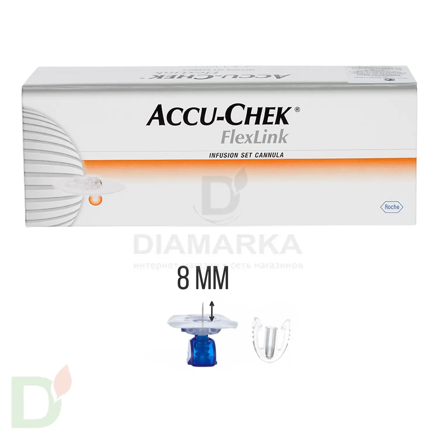 Внимание! На фото представлена упаковка, состоящая из 10 игл (канюль) Акку-Чек Флекс-Линк (Accu-Chek FlexLink) 8 мм. Цена указана за 1 штуку.